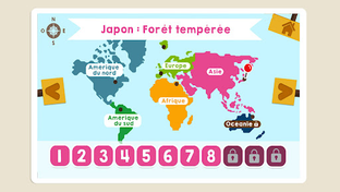 Each of the 60 levels reveals new ecosystems, faithfully represented so that the child approaches notions of biology and ecology.