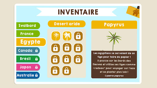 Each of the 60 levels of the game reveals new ecosystems, faithfully represented so that the child can retain notions of biology and ecology.