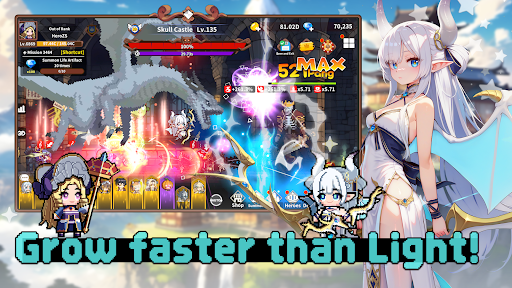 Collect unique Heroes and engage in lightning-fast team battles in this limitless, infinite growth, Idle RPG game!