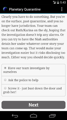 You’re a quarantine agent – an extrajudicial lawman who lets only approved people and products leave Earth – and in a few days your starship will be arriving at your new home world.
