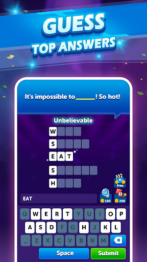 The rule is simple, just guess the 5 answers that most people gave and fill in the blanks. The initial letter and length of each answer are given, and the keyboard erases letters that are not in the puzzle.
