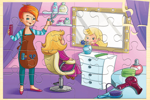This app contains beautiful, animated images and can help you have fun very well. For example you can choose a tailor image and start to find all the pieces to solve all the jigsaw puzzles.