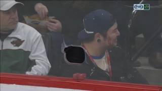 Wild player shoots puck through hole in glass, hits photographerFanDuel Sports Network North