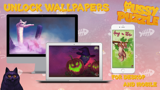 Pick a pussy puzzle you like and solve it in one of the 3 different puzzle sizes. Once all 3 of them have been solved you will unlock the “bigger than FULL-HD” wallpaper.