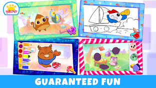 - 4 different types of games: Puzzles, Stickers, Free drawing and Coloring