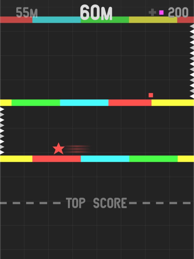 Jump through colored gates, avoid spikes, collect coins and unlock shapes/characters to score high in the endless, retro-inspired rainbow adventure.