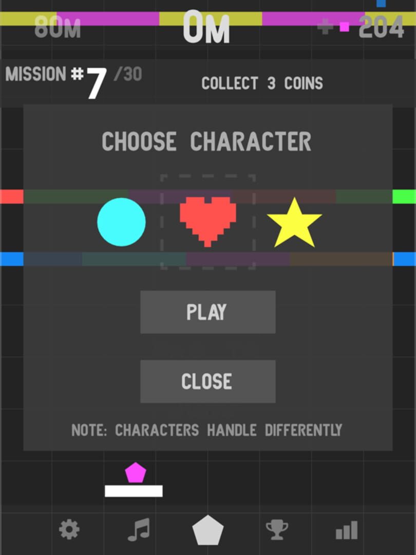Rainbow Slide features a whopping thirty missions for you to tackle as you ascend the rainbow. You'll encounter different shapes and characters along the way, each with its unique design and play style. Collect coins as you slide to unlock all the game's characters and shapes.