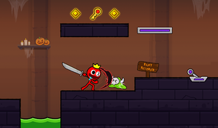 ⚔️ Use button to move, jump and fight. Red boy must avoid a lot of obstacles: poison water, enemies,..