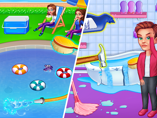 🏨 Wide range of room selections to play with. Play cleaning and fixing tools