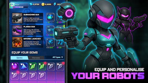 Each robot in your squad has a unique color, personality, and ability. Mix and match your lineup to create the ultimate defense combination! Power up your team with new weapons, skill upgrades, and strategic enhancements. The more you play, the stronger your squad becomes - even when you’re offline!