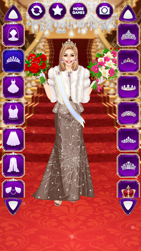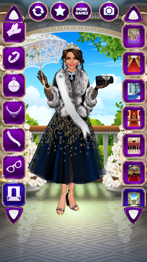 This app allows you to try over 150 apparel items in the aristocratic style on 6 dolls of different races. Many of the items are red - the traditional color of royalty in many cultures, but there are other colors, too. Among the accessories the game has those typical for a European monarch: the crown, the sceptre, the orb, and the mantle.