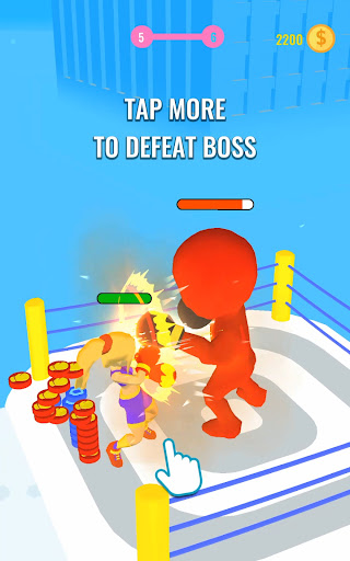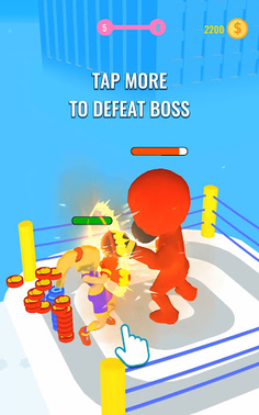 Play as a young boxer and send your opponent in the ring to the strongest knockout. How to do it? The gameplay is very simple. Run to the ring, collect protection and boxing gloves along the way, dodge punching bags and mannequins, break walls. Get ready for an incredible fight with a strong opponent in the ring! Apply all your skills to win.