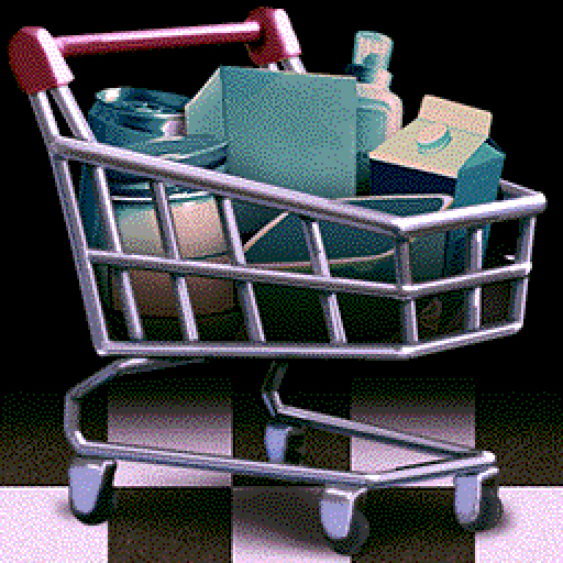Pick up all discounted items from the store while avoiding obstacles.