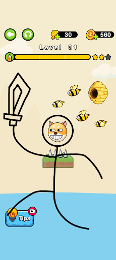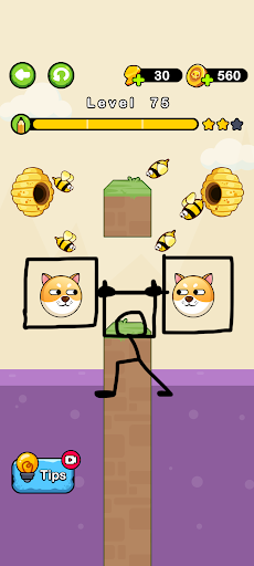 Evil bees are preparing to sting the little dog. Save the puppy! Save the Puppy is a simple, fun, and creative casual puzzle game where you draw walls to rescue the dog from the angry bees guarding the honey. How can you accomplish this feat? The answer lies in your wisdom and creativity, as you draw various lines and shapes!