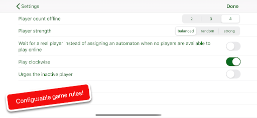 - two offline game modes available (Single Game and Score Mode) to play against robots
