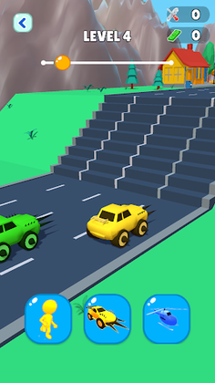 💥 You’ll join an exciting race with many obstacles, complicated and changeable terrains. Let’s start the race by observing carefully and quickly changing means of transport. You need to make use of flexible ability, concentration skills to transform various means of transport such as: Submarines, cars, airplanes, motorbike, umbrella…, overcome obstacles, and get the victory in this race.
