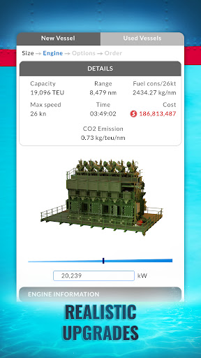 Vessel Customization: Upgrade each boat to fit the demands and adjust the oil or container capacity, speed, range and efficiency.