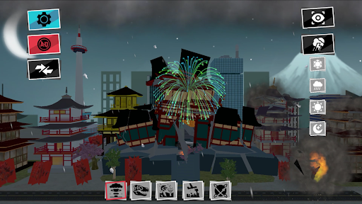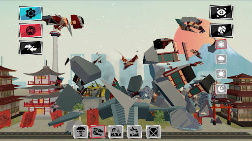 - Varied weaponry: Unleash chaos with an extensive arsenal, ranging from missiles and explosives to colossal creatures and natural calamities.