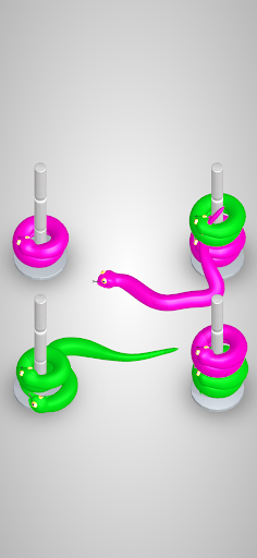 In this game, solve puzzles and pass the levels by moving those snakes. Get lost wrapped in colorful snakes. Bring the same color snakes together. When all snakes of the same color come together, you are entitled to pass the level. Build your own snake empire with your own snakes.