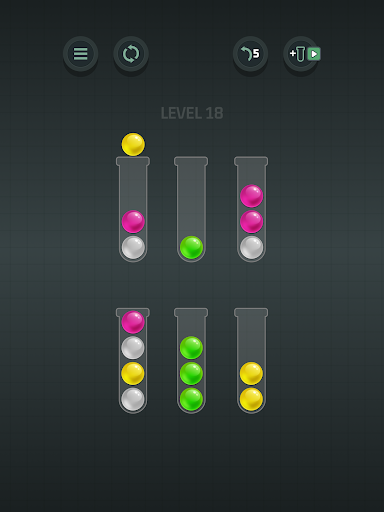 What do you do when you’re bored? Do you love to challenge yourself with mind teasers? We challenge you to play our fantastic color match sorting game for adults free where you have to stay focused. Move the dot up and drop it into another cup with the same ball color tube. After the balls in tube test are sorted the level is done in this fantastic color match.