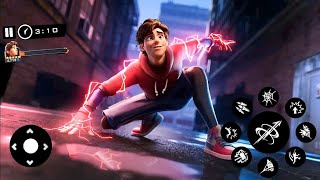 Gear up with state-of-the-art weaponry, from web shooters to high-tech suits. Customize your arsenal for each high-stakes mission .Use rope superpowers and climb on buildings with light speed hero in spider-man fighter games & show your skills in flying spider rope man game.