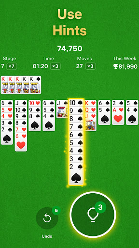 Made a wrong move or unsure what to do in a classic spider solitaire game? Smart Hints and Undos will have you covered!