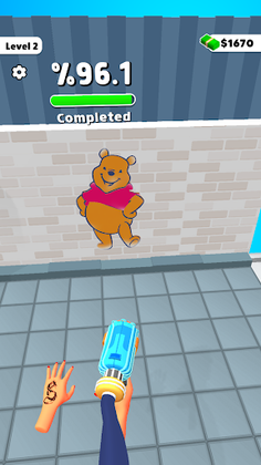 As you progress through the game, you'll encounter intricate wall designs in the intermediate stages. Armed with your trusty spray gun, it's your job to bring these fragmented masterpieces to life with a burst of vibrant colors. Collect more paint, refuel your bottles, and continue to embellish the walls.