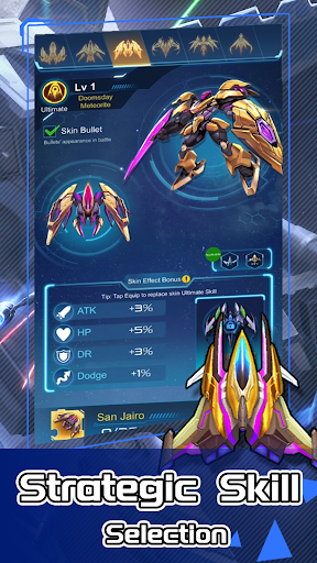 Collect and Evolve Star fighter to take on the aliens' surprise attacks. The game allows you to choose from fighters with different positions, 12 types of wingmen, and 108 types of unique parts to create thousands of strategies to fight against the aliens.