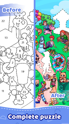 Indulge your senses with the soothing atmosphere and vibrant animations that breathe life into every stroke. Engage your mind and unwind as you paint by numbers and assemble intricate puzzles, all while unlocking new levels and rewards.