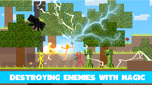 Stickman King Craft Battles: Complete levels and climb to the top, fighting numerous enemies, including creepers, zombies and skeletons. The battles in the game are presented in an exciting boss-fighting style, where epic clashes and monsters, red stickmen and the strengthening of your weapons and magical abilities await you.