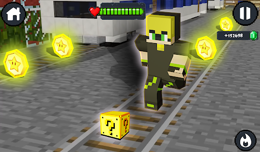 At every level, you get to collect Coins, Words and Gifts. Coins can be used to buy more lives, whereas, Words can unlock more characters. Collect gifts and win exciting rewards in this fantasy Black Craft cat world. Run fast and dodge the oncoming trains & buses