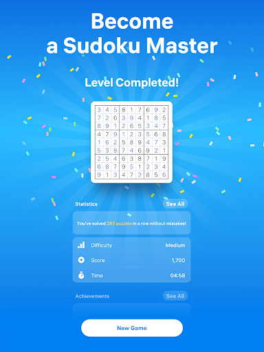 Make your Sudoku experience enriching, choose the difficulty level that suits you best. Select easier levels to hone your skills or step up your game and try more challenging levels. The app offers hints, auto-check, and highlighted duplicates that make the game more convenient and accessible to play. However, if you prefer a more strenuous game, you can disable these features and approach the game with full rigor.