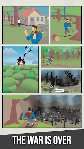 This game is an idle RPG for a woodcutter hero who lost his family in the war, but does not despair and helps the inhabitants to survive and rebuild the city after the war.