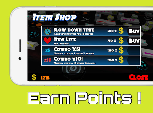 Similar to other Endless Games, you have only one attempt to cover as much distance as possible. But you can add life in your inventory using the in-game currency to use when you need and keep progressing. Four prominent items are available, such as Slow down Time, New Life, Combo X5, and Combo X10.