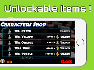 The game introduces a variety of adorable characters, letting you play with style. Mr. Green, Mr. Yellow, Mr. Orange, etc. are prominent characters to choose and play. Each character requires a specific amount of money to unlock.