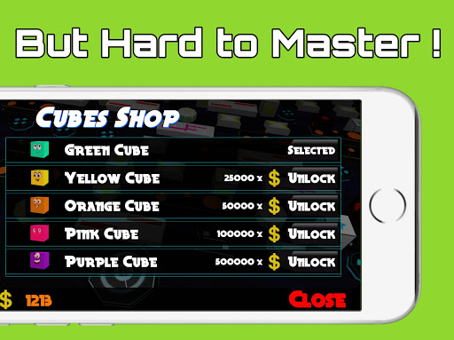 Easy to play but hard to master. Using the intuitive touch controls, you can either control a cube or a female protagonist equipped with space suit and start jumping over platforms to earn points. During the game, you need to avoid falling from blocks or moving platforms! You will receive lots of in-game points and cash that you are allowed to use in-game purchases like you can unlock characters, cubes of different colors, and items from the shop to boost your power.