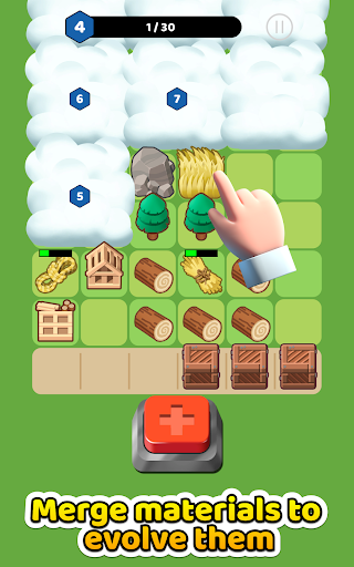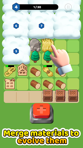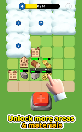 As you level up, different areas of your map are unlocked, offering new resources that can be collected and merged to create advanced structures. The ultimate objective is to create a cute little town with the help of your dedicated worker.