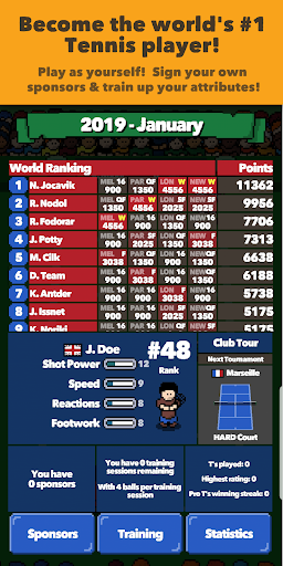 Or play as or against 96 computer players with unique playing styles, or create your own player in Career mode and work your way up to the #1 in the world.