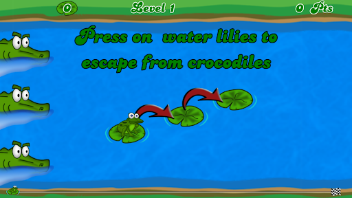 The jumping frog is a game in which the player demonstrates its reflexes and finger speed making it jump upriver through the water lilies to avoid that it is devoured by the crocodiles.