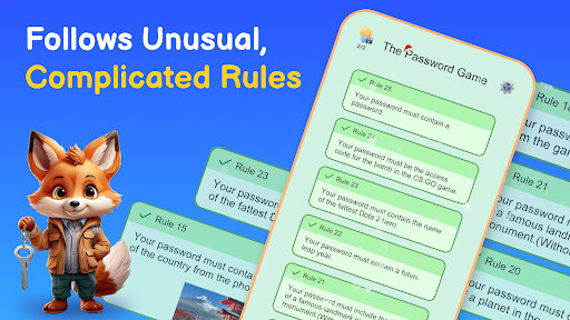 So, what are you waiting for? Step into the world of The Password Game and embark on a journey full of laughter, challenges, and unforgettable moments. Download now and start cracking those absurd passwords in the most entertaining password puzzle game you've ever played!