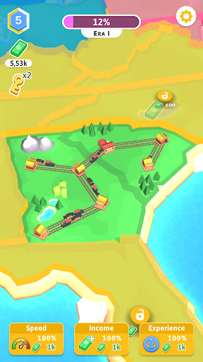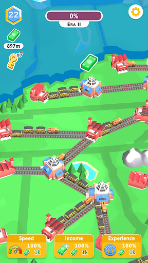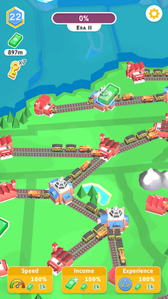 Are you ready to build a world-famous railroad system? In Train Empire: Connect Railroad, you will take on the role of a public communications architect, and create your own communications system across the country! Start your journey from the days of wooden train stations, steam locomotives, and saloons. As your business grows, you will get to the era of modern trains and industrial boom stations. When you build a railroad network that occupies most of the map, you will move into the modern era with high-tech stations and high-speed trains.