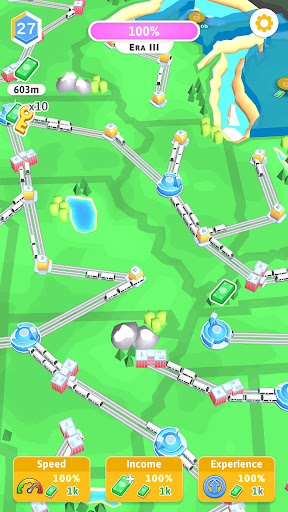 Use bonuses to earn more money! Speed up your railway so that trains make more trips. Increase the number of trains to carry more passengers, upgrade income to receive more cash. Create the perfect strategy to earn more money and satisfy all passengers! Build your own train corp to create the best transport system in the world.
