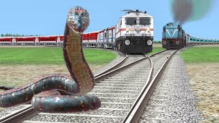 Giant SNAKE vs Two TRAINS | Stops The Train | BeamNG.Drive - Train Simulator 2023Train Junction