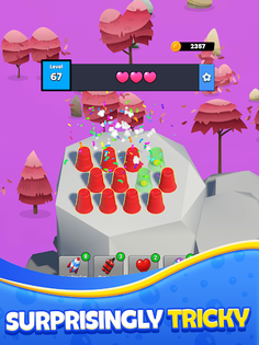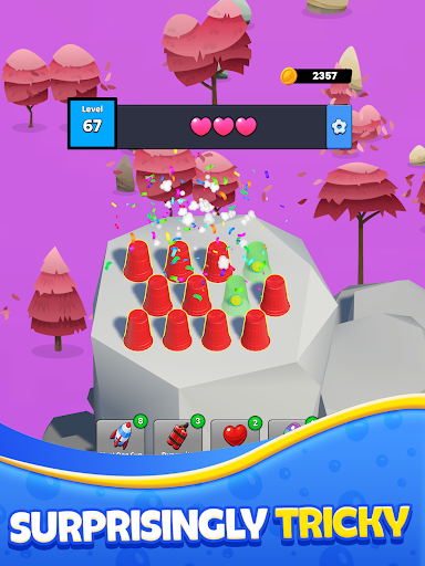 Experience the excitement of the classic fairground challenge, where you must track the cup hiding the ball as they swiftly shuffle. Start with three cups and find the ball, but brace yourself for increasingly thrilling levels with more cups and multiple balls to keep you on your toes. Beware of fake switches that add an extra layer of challenge, where cups move but the ball remains elusive. Stay focused, master the art of perception, and immerse yourself in this timeless game. Download 'Tricky Cups' now and prepare for endless fun and excitement!