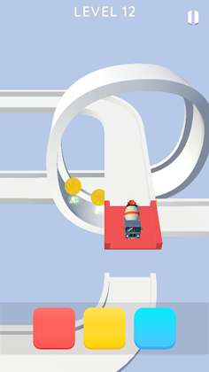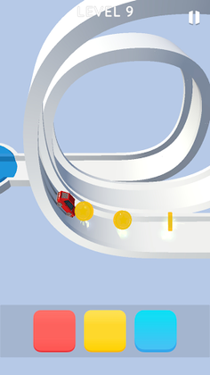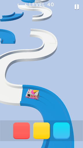 When you tap the blue button, the blue-colored corners and the blue round road blocks rotate to clear your way.