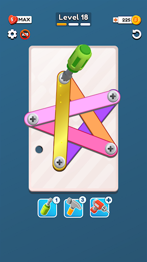 Introducing Unscrew Puzzle:Your objective is simple but the challenge is real – strategically swap the positions of screws to release the tightly secured plates.