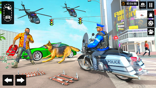 There is a Unique Concept for Dog Simulator Lovers who like to chase criminals. As a courageous police dog, it's your duty to keep the streets safe and crime free. Different hurdles & enemies for police real cop dog to trace in police games. This dog game driving simulator is providing a variety of shooting guns & police cars for gangster chase. This Police Game is designed for individuals of all ages, offering a thrilling experience of Dog Shooting and Police Criminal Chase Games that ensures maximum enjoyment in the world of Crime Chase Games.