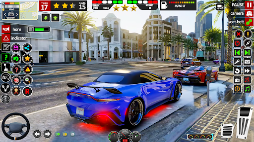 • Car Racing Games Different types of controls (Steering, Buttons, and Tilt) in city driving school simulator