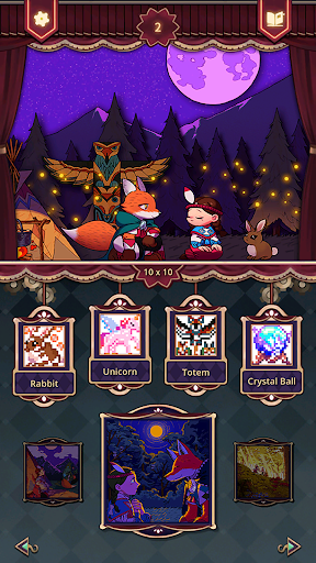 Embark on an exciting journey to the Valley of Stars with a girl and her companion, Mr Fox, through Nonogram puzzles wrapped in a veil of mystery. Do you have what it takes to guide them to safety and uncover the truth that lies ahead? Immerse yourself in the beauty of their adventure while solving each challenging nonogram puzzle.