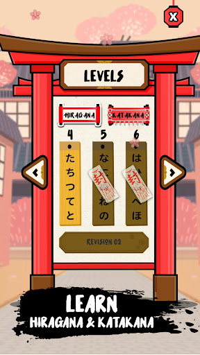 Hiragana levels are available for free. Unlock Katakana forms in the shop.